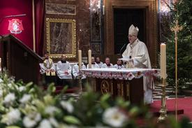 Mindebből az is következik, hogy „senki sem ismerheti annyira minden rezdülésünket, gyöngeségeinket és vágyainkat, mint ő”. „Isten színe előtt élünk, de ez az Isten végtelenül irgalmas.” Karácsonykor ugyanis megmutatta, „nemcsak ismeri, hanem vállalja is sorsunkat” – mondta a bíboros.