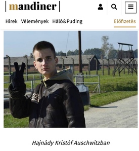 „Egy olyan képet közölt róla az atv.hu internetes portál, amelyen az auschwitzi haláltáborban pózolt, a győzelem jelét mutatva. A képet maga Hajnády tette közzé a Facebook-oldalán” – írta a Mandiner.