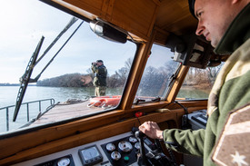 –  Az AN–2-nek nagyon jó a manőverezőképessége; noha eredetileg tűzszerészfeladatokra szánták, folyami járőrözésre is tökéletesen megfelel. Képes a sekély vízben is haladni, gyors és minden eszközzel fel van szerelve ahhoz, hogy éjjel-nappal folyamatosan el tudja látni a szolgálatot, rossz látási viszonyok között és sötétben is – tudjuk meg Gajdos Milán hadnagytól. Az ezred kommunikációs tisztje azt is elárulta, maga a hajótest magyar gyártmány, 1954-ben bocsátották először vízre, 2007-ben pedig teljes körű felújításon esett át. Ennek során az összes technikai eszközt kicserélték rajta, beleértve a motorokat is, így maximális sebessége a 40 kilométert is eléri óránként. További előnye, hogy tíztonnás súlya ellenére a merülése nem haladja meg a hatvan centimétert, így partközelben is alkalmazható. A honvédség által használt méretes aknamentesítő hadihajóknál kisebb járőrhajót ráadásul közúton is lehet szállítani; most is egy tréleren jutott el a fővárosi hadikikötőből Kiskörére – itt található olyan daru, amely képes ekkora tömeget a folyóba emelni –, majd a Tiszán haladt tovább Szegedig.