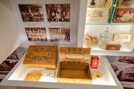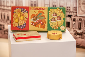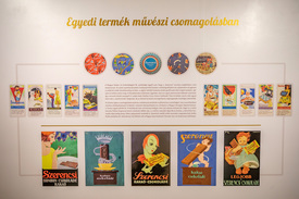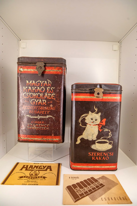 A kiállításon láthatunk százéves, fehér cicás emblémájú régi fém kakaósdobozt, igényesen kivitelezett konyakmeggyes és bonbonos ládikát. A termékek csomagolását országosan ismert grafikusok tervezték, köztük a Munkácsy Mihály-díjas Gönczi-Gebhardt Tibor, K. Lukáts Kató, Káldor László és Mallász Gitta.