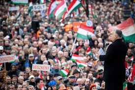 Tisztelt Ünneplők! Ahogy a nemzet örök, úgy a birodalmak se változnak. Félhold, sas, csillag, vörös vagy uniós sárga, a birodalom csak hódoltságot és örökös tartományokat akar. Alattvalókat és adófizetőket, sohasem szabad magyarokat. És mindig akad egy birodalom, ami a magyarok szabadságára pályázik. Most épp egy brüsszeli. Brüsszel visszaél a hatalmával, ahogy Bécs tette annak idején. Éppen úgy akarnak uralkodni rajtunk, mint régen a bécsi udvar helytartói tették. Az orvosság, Barátaim, nem az, hogy hátat fordítunk az Európai Uniónak, éppen ellenkezőleg: nem kifelé, hanem befelé kell mennünk. Elfoglaljuk és megváltoztatjuk. Brüsszelben is fordul majd egyet a történelem. Eljön az idő, és minden számlát ki fogunk egyenlíteni. Petőfivel üzenjük: ha nem fér a bőrébe, kihúzzuk majd belőle! Letörjük a túlkapásait, visszaszerezzük a nemzettől törvénytelen módon elkonfiskált jogainkat, a Brüsszelből fizetett labancaikat pedig postafordultával visszaküldjük. Hadd boldogítsák egymást az Európai Parlamentben.