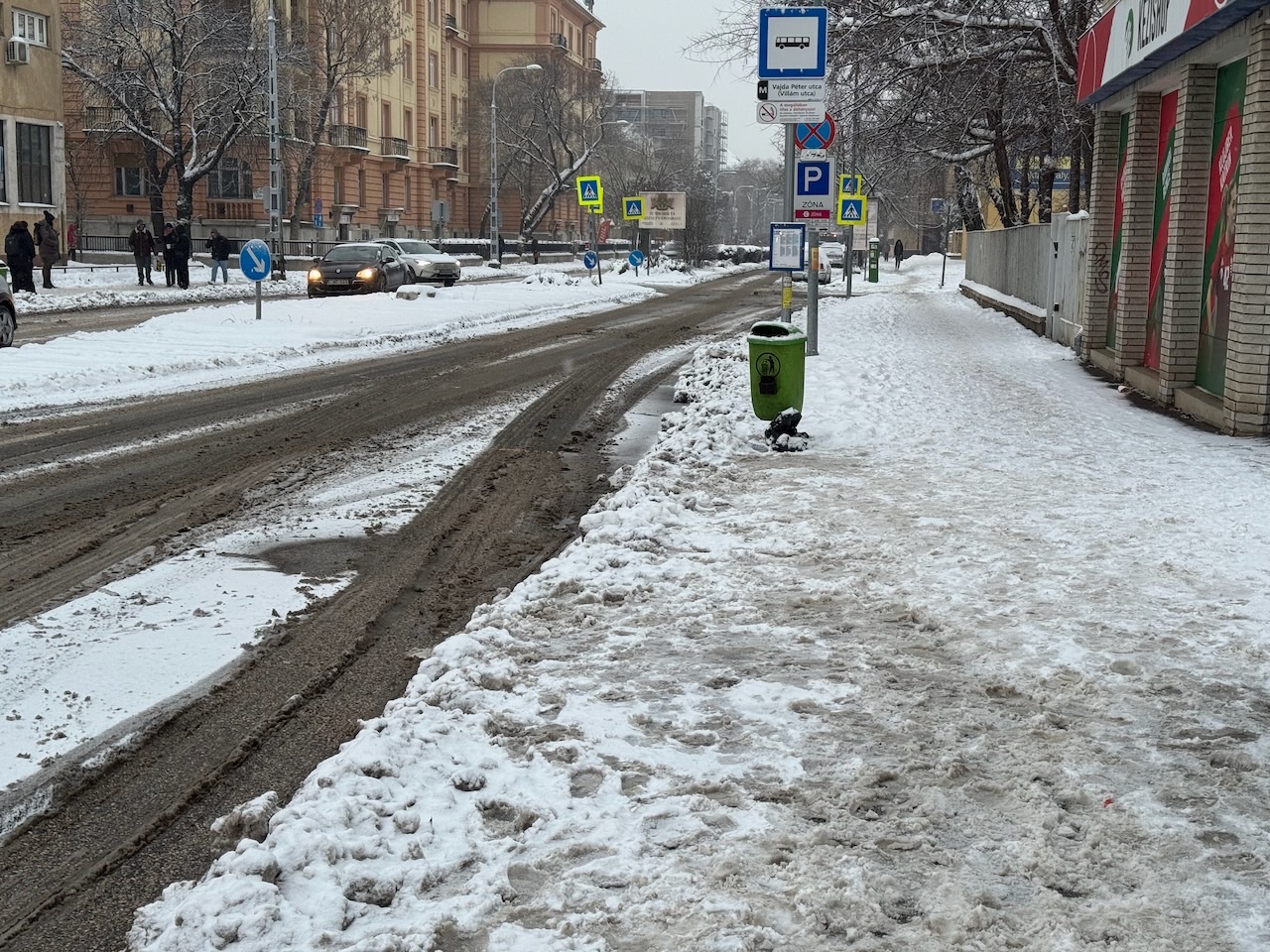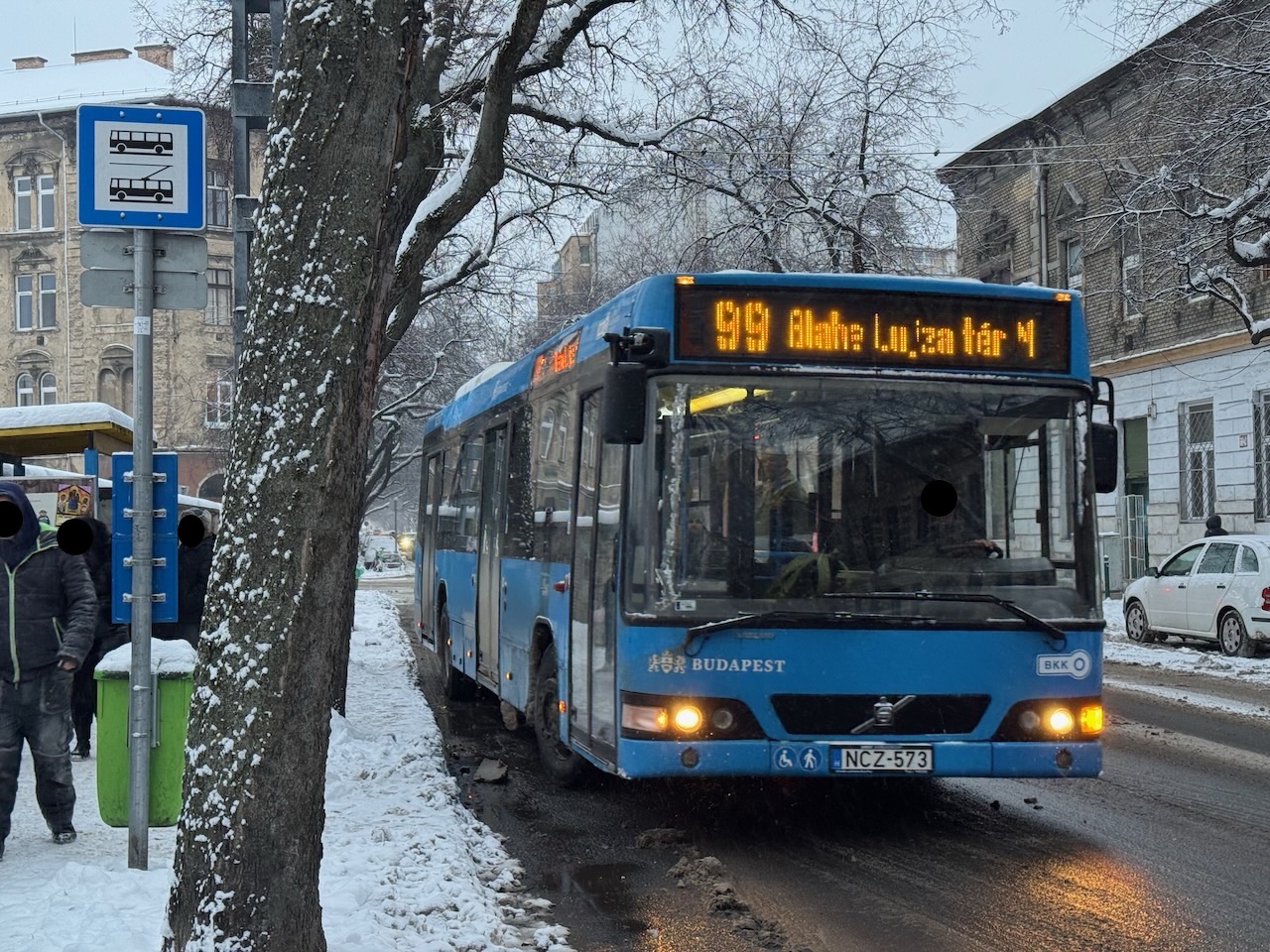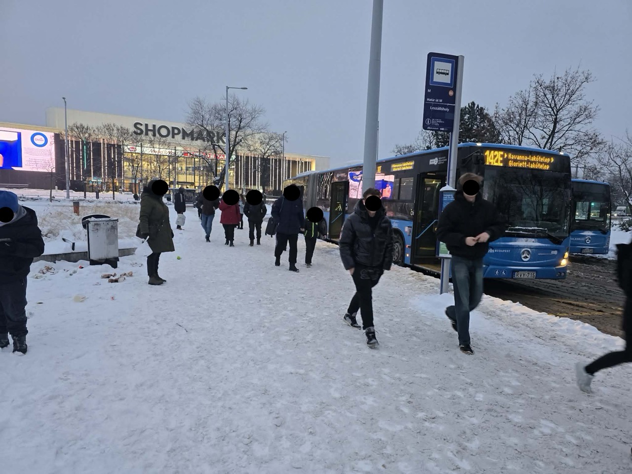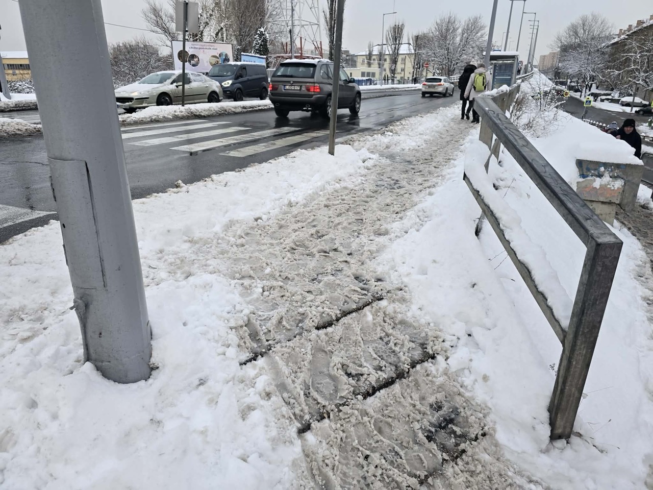Volt olyan utas, aki szánkóval várta a buszt a Határ úton. A forgalmas csomópontot napok óta nem takarítják. Az utasok városszerte csúszkálnak, hiszen minden tiszta jég és hó. Az utasok a napokkal ezelőtt lehullott és időközben eljegesedett havon egyensúlyozva szállnak le és fel.