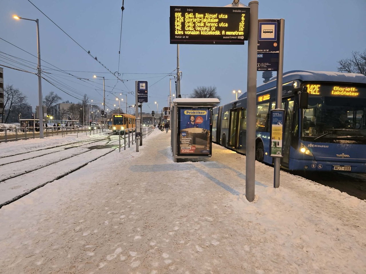 Az elmúlt napok havazásai megbénították Budapestet. Karácsony Gergely felkészült a télre, csak épp hóra nem számított. A főpolgármester győzelmi jelentései ellenére az igencsak forgalmas Határ út metróállomás buszmegállóit sem takarítják.