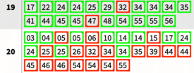 A Karácsony Sándor utca megállóban (Csepel hévállomás felé) a következő indulások lesznek hétköznap. Zölddel az összajtós, pirossal az elsőajtós indulásokat jelöltük. Látható, hogy 20 óra előtt is vannak piros indulások, ezek az egész nap elsőajtós 152-es buszt jelölik. Ebben a megállóban 20:35-re jut el odáig a rendszer, hogy onnantól kezdve minden indulás elsőajtós. Nemcsak egy járaton belül variálódik tehát a felszállási rend, de az ilyen, sok járatot kiszolgáló megállóban látszólag összevissza követik egymást a különböző felszállási rendű buszok.