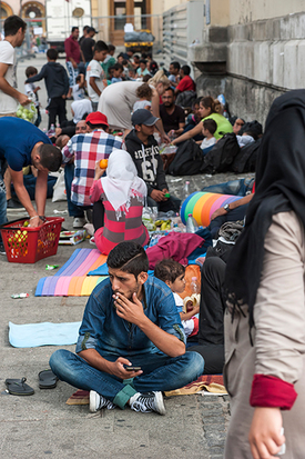 „Ha a hegy nem megy Mohamedhez, Mohamed megy a hegyhez” – tartja a mondás, és minden bizonnyal Jehova Tanúi is ezt az elvet követve érkeztek a helyszíne. A pályaudvarral szemben lévő kis utcában fogtak hozzá a hittérítéshez, és a bátorságuk meghozta a gyümölcsét: már volt olyan migráns, amelyik a kiadványukat lapozgatta. A menekültáradat persze a turistákat sem hagyta hidegen: a japánok szokásukhoz híven fényképezőgéppel a kezükben figyelték az eseményeket, és olykor mosolyogva vetődtek oda egy-egy migráns mellé, hogy közös portré is készülhessen a Facebookra. Távolodva a pályaudvartól, egy-két utcával arrébb már nem éreztük úgy, mintha egy idegen országban járnánk. Békés, csendes utcák, tisztaság és rend, sehol egy menekült, és magyar szót is hallottunk.