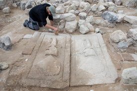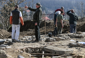 Kimegyünk a terepre, bukdácsolunk a markológép után, aztán a feltárás közepe táján leparkolunk az egyik kitartóan csákányozó atyámfia mellett. Az igazgató úr először a hóna alá szorított vázlatait mutatja, aztán meg a csákányos ember előtti dombocskát.
