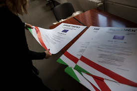 A nemzetiszínű és európai uniós motívummal ellátott hirdetmény 50×70 centiméter méretű és több mint 87 ezer darabot gyártottak belőle.