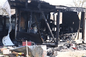 Kiégett bádogépítmény Dabason 2023. március 12-én. A tűzoltók a helyszínen két holttestet találtak.