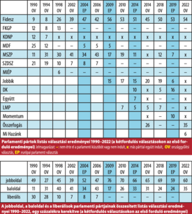 Eszerint ma Magyarországon a liberális attitűdnek nincs parlamenti szintű támogatottsága, a jobboldali attitűd a választók kétharmadát jellemzi, a baloldali pedig az egyharmadát. Ez az eloszlás először a 2009-es európai parlamenti választásokon rajzolódott ki, azóta lényegében változatlan. De mielőtt ennek a részleteibe belemennénk, térjünk vissza a kezdetekhez, és próbáljuk meg 1990-től vizsgálni a választási eredményeket ebből a szempontból. Lényeges szempont, hogy ezúttal szakadjunk el a kormánykoalíció kontra ellenzék felosztástól, ugyanis, mint látni fogjuk, a jobboldal mindkét csoportban képviselteti magát. Létezik egy milliós választói tábor, amelyik kritikus ugyan a jobboldali kormánnyal szemben, de balra még így sem szavaz, a választói attitűdje alapvetően jobboldali.