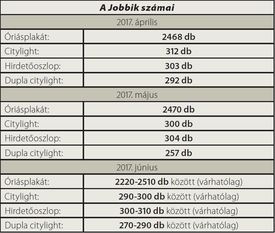 A Jobbik bevallása szerint áprilisban 2468, a májusban 2322, júniusban 2224 darab plakáthelyet béreltek.