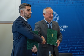 Miseta Attila, a PTE rektora felidézte: a pécsi universitas és a honvédelmi tárca között fennálló együttműködés megújítása, kibővítése mindkét fél számára újabb lehetőségeket tartogathat, „kapukat nyithat meg”.