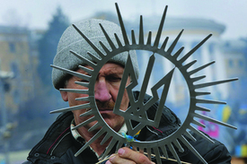 Az ukrán nemzeti jelkép a Majdanon. Gyorsan csalódtak a „demokráciában” (Fotó: inosmi.ru)