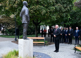 Sulyok Tamás koszorút helyez el Szladits Károly szobránál Dunaszerdahelyen