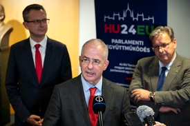 Rétvári Bence a JPSG ülésének az Európai Unió hágai székhelyű rendőrségi együttműködési szervezete, az Europol, valamint az Európai Unió Bűnüldözési Képzési Ügynöksége (CEPOL) részvételével tartott európai parlamenti megbeszélést követően Kósa Lajossal, az Országgyűlés Honvédelmi és rendészeti bizottságának elnökével, valamint Vejkey Imrével, az Országgyűlés Igazságügyi bizottságának elnökével közösen nyilatkozott a magyar sajtó képviselőinek.
