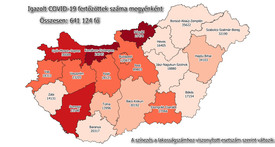 Az oldal térképe szerint eddig Budapesten (120 873) és Pest megyében (89 803) regisztrálták a legtöbb fertőzöttet. Ezt követi Győr-Moson-Sopron (36 684), Borsod-Abaúj-Zemplén (35 622) és Hajdú-Bihar megye (34 103). A fertőzésben legkevésbé érintett megye Tolna (13 996), illetve Zala megye (14 131).