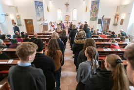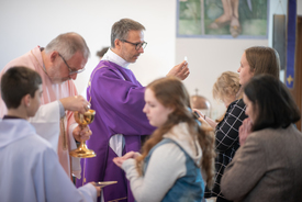 – Szeretnénk a gyerekek számára már óvodáskorban vonzóvá tenni a szentmisét, ezért kapnak apró feladatokat, általuk pedig örömet sugárzó felnőtti figyelmet – mondja dr. Vaszil László, aki gyermekorvosi praxisa mellett elvégezte a teológiát, és szentelés előtt álló diakónusnövendékként segíti a plébános meg az egyházközség munkáját.