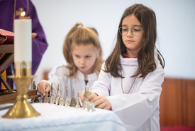 Szinte kitágul a tekintetük, a padsorokban ülő szülőknek pedig a szívük, amikor áldozás előtt kezükben pici csengettyűikkel, akár apró énekesmadarak, csivitelésbe kezdenek.