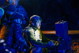 Tűzszerész és Folyamőr Ezred katonái éjszakai gyakorlatukon, amelyen tűzszerészek improvizált robbanóeszközök hatástalanítását végzik egy fiktív merénylet után, speciális körülmények között az újdörögdi gyakorlótéren 2024. október 17-én