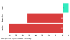 Az eredményekből megállapítható, hogy Izrael kedveltségi indexe a pozitív tartományban van, Palesztina és a Hamász esetében ez a mutatószám egyértelműen negatív – emelték ki. Hozzátették: ez azt jelenti, hogy a hazai közvélemény Izrael iránt szimpátiát érez, míg a Hamászt jelentős elutasítottság övezi Magyarországon. Megjegyezték: a megkérdezettek elsöprő többsége, 94 százaléka hallott arról, hogy a Hamász terrorszervezet a zsidó állam területén több mint ezer civilt gyilkolt meg az elmúlt hetekben.