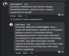 „Szeretném tájékoztatni Cseh Katalint, hogy a reggeli élő bejelentkezés, valamint az azt megelőző laktanyai szemle is a honvédség előzetes jóváhagyásával történt. Semmi olyan információ nem hangzott el, ami veszélyeztetné a honvédség műveletét, vagy bárki biztonságát. Büszkék vagyunk katonáinkra, ugyanakkor az is fontos, hogy tájékoztassuk az itt élő embereket, mert sokan félnek és aggódnak.”