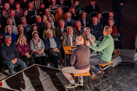 A beszélgetés végül ennél vidámabb hangulatban ért véget, amit csak fokozott, hogy zárásként az Edda Művek frontembere, Pataky Attila is színpadra lépett, és szó szerint megmozgatta a több száz fős, a baloldali kacsáknak be nem dőlő közönséget.
