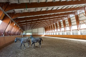 A lovasközpont tíz hektáron fekszik, és valójában négy nagyobb részből áll. Elkészült a fedeles lovardakomplexum, ami két fedeles lovardát foglal magába: az úgynevezett versenylovarda 700 fő befogadására alkalmas, ez egy melegítő-gyakorló fedelessel egészül ki, ahol a felkészülés folyik. Ez a világon nagyon kevés helyen áll így rendelkezésre. A legtöbb helyen a bemelegítés nem fedett lovardában, hanem a szabad ég alatt zajlik, ami a késő őszi, illetve kora tavaszi versenyek rendezése szempontjából komoly hátrány. Az itteni klíma, a hegyvidéki éghajlat miatt ebben az időszakban nem ritka a zord időjárás, eshet az eső, a hó.