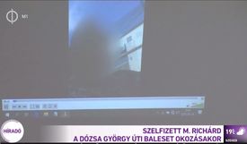 A felvételen az látszik, hogy M. Richárd vádlott a mobiltelefonjával magát filmezi a baleset előtti másodpercekben, miközben luxusautójával óránkénti 140 kilométeres sebességgel száguld. A 10 perces felvétel 25. másodpercében történik az ütközés, az azt következő részt a bíró kegyeleti okokból már nem játszotta le.
