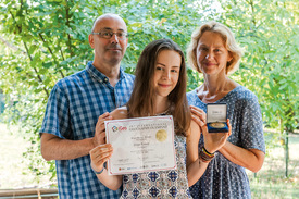 A magyar csapat aranyérmesét, Kaszap Kinga Györgyit Dunakeszin, családi körben kerestük fel. Kinga ősztől a fővárosi Radnóti Miklós Gimnázium 11. évfolyamos tanulója lesz, a középiskolában kiemelten foglalkozik majd természettudományos tárgyakkal, ilyen irányban tervezi továbbtanulását is. Kanadában olyan egzotikus országokból érkezett versenyzőkkel ismerkedett meg, mint például Nigéria, Indonézia vagy Ausztrália.