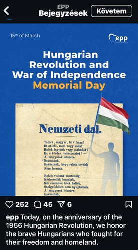 Úgy tűnik, a Manfred Weber vezette, a Tiszát is soraiban tudó pártszövetségnek nem tartott részletesebb történelemórát magyarországi beosztottjuk, Magyar Péter, így azt gondolták, március 15-én ’56-os évforduló van…