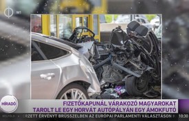 Egy horvát rendszámmal közlekedő autós a sebességhatárt átlépve az autópálya egyik kapujánál várakozó magyar autósoknak csapódott. A kocsi valósággal letarolta a két magyar járművet – hangzott el az M1 Híradójában pénteken.