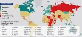A Föld legbiztonságosabb országa jelenleg a Skandináviához tartozó Izland, amely 2008 óta őrzi vezető pozícióját. Izlandot a sorban Új-Zéland, Portugália, Ausztria, Dánia, Csehország, Szlovénia, Kanada, Svájc, Írország, Japán, Ausztrália, Bhután, Norvégia és Magyarország követi. A világ legkevésbé biztonságos országai – csakúgy, mint az előző évben – Jemen, Dél-Szudán, Irak, Afganisztán, és a sor legvégén a háborús Szíria áll.