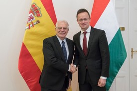 Spanyolország fontos partnere Magyarországnak, hiszen mindkét állam tagja ugyanannak a politikai, illetve védelmi szövetségnek: az Európai Uniónak (EU), valamint az Észak-atlanti Szerződés Szervezetének (NATO) – jelentette ki a külgazdasági és külügyminiszter hétfőn Budapesten, sajtótájékoztatón, miután hivatalában fogadta Josep Borrellt, Spanyolország külügy-, európai uniós és együttműködési miniszterét.