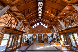 – Bár a tervezésben és az építkezési folyamatban még jelen volt, a Hagymatikum Gyógyfürdő első részlegét már Makovecz 2011 őszén bekövetkezett halála után nyitottuk meg. 2015-ben adtunk be költségvetési támogatásra kiírt pályázatot a már meglévő Makovecz-épületek felújítására és karbantartására, illetve a mester kézjegyével ellátott további tervek megvalósítására. De saját önkormányzati forrás elkülönítésével is elköteleztük magunkat a szellemi és építészeti hagyaték továbbörökítésére. E folyamat részeként újult meg 2018-ban a városi színháztermet is magában foglaló kulturális központ, a Hagymaház, Makovecz első megvalósult makói munkája. 2019-ben adtuk át a József Attila Városi Könyvtárat, idén márciusban pedig a Hagymatikum új részlegét. Ezen túlmenően elkezdtük a Páger-mozi és Kávézó közösségi tér épületegyüttesének felújítását, amelynek befejezésére 2026-ig kaptunk lehetőséget. Makón 1963-ban nyitották meg az első termálvizes közfürdőt, de a gyógyvízben rejlő idegenforgalmi lehetőségekre a 80-as évek végén már komolyabban is felfigyelt az akkori városvezetés. Nagyon szerencsés találkozása az építésznek és a településnek, hogy Makovecz 1996-ban éppen olyan időszakban érkezett Makóra, amikor a mezőgazdasági profil mellett az elöljárók egy másik területen is új lendületet kívántak adni a városfejlesztésnek.