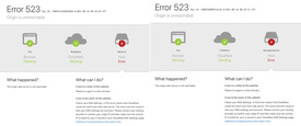 Úgynevezett 523-as hibát jelez az előválasztás honlapja, amennyiben az „Előregisztráció” és az „Online előregisztráció itt” gombra kattintunk. Képernyőfotóink tanúsága szerint a működéshez szükséges egyéb domének, az eleve.hu és az elovalasztas.hu sem működnek megfelelően.