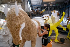 Már készülnek a karneváli virágkocsik Debrecenben: faragják a figurákat, némelyikre pedig már a száraz virágokat is feltűzték – közölték a szervezők a munkálatok helyszínén hétfőn sajtótájékoztatón.