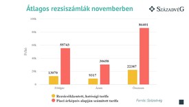 Az energiahordozók tőzsdei ára tovább növekedett novemberben, így ha a lakossági tarifákat ezek alapján határozhatták volna meg a szolgáltatók, a háztartásoknak jelentős, csaknem négyszeres kiadásnövekedéssel kellett volna szembesülniük. Míg a jelenlegi szabályozás mellett egy átlagos magyar háztartásnak 22 ezer forintot kell havi áram- és földgázszámláira fordítania, a piaci árszabás mellett ez meghaladta volna a 86 ezer forintot – írja a Századvég.