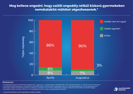A genderideológia elutasítottsága mellett még egyértelműbb az álláspont a gyermekvédelem kapcsán. Az áprilisi adatokhoz képest tovább nőtt azoknak a száma, akik nem engedélyeznék kiskorú gyermekek esetében nemátalakító műtétek elvégzését. Tízből kilenc ember vélekedik úgy, hogy ezeket a beavatkozásokat nem szabad kiskorúakon végrehajtani, és csak a magyarok 3 százaléka van ezzel ellentétes véleményemen.