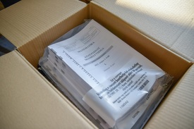 A matematika írásbeli érettségi vizsga feladatlapjai az átvételkor a Debreceni Járási Hivatalban 2022. május 3-án