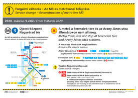 A BKK korábbi közleménye szerint a 3-as metró hétköznapokon továbbra is Újpest-központ és a Nagyvárad tér között közlekedik, de az Arany János utca és a Ferenciek tere állomáson megállás nélkül halad majd át.