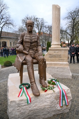 Kölcsey Ferenc szobra, amelyet április 12-én avattak fel Novák Katalin köztársasági elnök jelenlétében, a Szatmár megyei kisváros központjában, a polgármesteri hivatal előtt található. Az avatóünnepséget más városokból érkezett román szélsőségesek próbálták megzavarni.