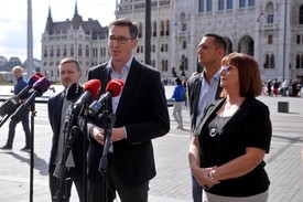 Karácsony Gergely, Soproni Tamás VI. kerületi közös ellenzéki polgármesterjelölt (Momentum), Gy. Németh Erzsébet XVII. kerületi közös ellenzéki polgármesterjelölt (DK) és Molnár Zsolt, az MSZP budapesti elnöke