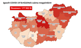 Az oldal térképe alapján eddig Budapesten (41 251) és Pest megyében (23 372) regisztrálták a legtöbb fertőzöttet. Ezt követi Győr-Moson-Sopron (12 079), Borsod-Abaúj-Zemplén (10 337), Szabolcs-Szatmár-Bereg (9229) és Hajdú-Bihar megye (9220). A fertőzésben legkevésbé érintett megye Tolna (2468).