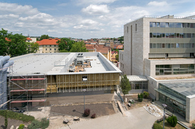Polgár professzor elődjétől megörökölt tölgyfa burkolatú, koloniál stílusú irodájából a régi épület földszintjére lépcsőzünk. A ruskicai márvánnyal burkolt előcsarnokban emléktáblák hirdetik: itt kezelték többek között Babits Mihályt és József Attilát. Alig száz méterre pedig, már tető alatt, átadás előtt áll az új és önálló mellkassebészeti központ három műtőblokkos és terápiás részlege. A fejlesztés kormányközi szerződések alapján lehetővé teszi majd a jelenlegi határainkon túl élő magyarok és nem magyarok gyógyítását is.