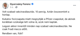 Legyen akkor innentől minden nap szabad vakcinaválasztás. Ne csak Fradi meccs előtt. Rendben van, fiúk?”