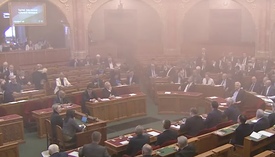 Az Index tudósításából kiderül: a szavazás időpontjában a momentumosok füstgyertyákat gyújtottak az ülésteremben, a karzatról pedig röplapokat szórtak le.