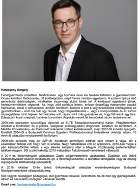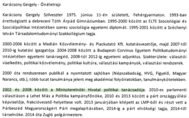 Az írás hozzáteszi: a fellelhető információk szerint Karácsony 2000-ben, 25 évesen került a nagypolitika közelébe. Ekkor kezdett a Medián közvélemény-kutatónál dolgozni, ahol 2006-ig kutatásvezető, attól kezdve pedig kutatási igazgató volt. 2002-ben már részt vett az SZDSZ választásai kampányában, és feltehetően itt szerzett kapcsolatain keresztül kerülhetett Horn csapatába. Gyurcsány Ferenc 2004-es hatalomra kerülését követően pedig még négy évig nekik dolgozott.