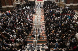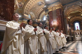 Ferenc pápa, a 88 éves korában elhunyt római katolikus egyházfő lelki üdvéért tartott szentmise, amelyet a Magyar Katolikus Püspöki Konferencia (MKPK) tagjai mutattak be a Szent István-bazilikában 2025. április 23-án