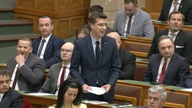 Hozzátette: aki nem igazságos békét akar, az a „akasztófák, november 4-e békéjét” akarja. Aki ezt a békét választja, az valójában ki akarja vezetni az európai közösségből az országot – hangoztatta. A jobbikos képviselő azt is javasolta, „merjenek elszakadni Putyintól”, az orosz állásponttól.