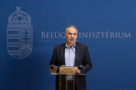 Budapest, 2025. április 5. Nagy István agrárminiszter sajtótájékoztatót tart a ragadós száj- és körömfájás fertõzõ betegségrõl az állategészségügyi operatív törzs ülése után a Belügyminisztérium Szentháromság téri új épületében 2025. április 5-én. MTI/Lakatos Péter
