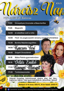 Nárcisznapot tartanak Európa legnagyobb összefüggő nárciszmezejének virágzása alkalmából április 26-án Babócsán.
